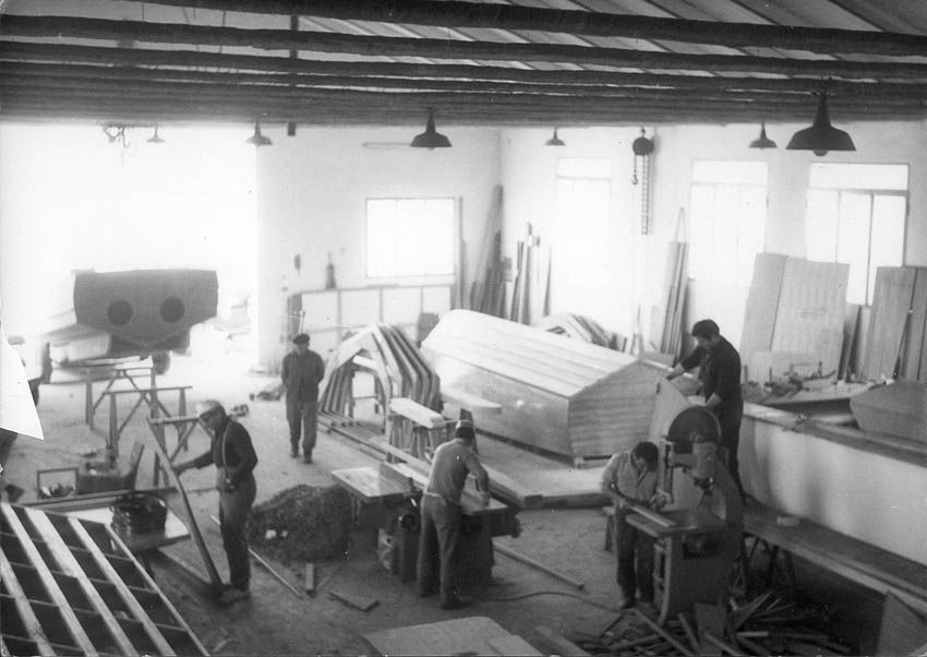 In January 1970, the boat yard moved to the present head office still in Marina di Ravenna, located in via del Marchesato 11 in Marina di Ravenna, occupies 8,000 sq. m. (4,000 roofed). The yard designs and produces cabin cruisers of various lengths and provides a number of services (launching, yard slipway for boats weighing up to 40 tons, and a boat park in an approx. 3,000-sq. m. building which is empty during the summer but which can house 60-70 boats, according to sizes, during the winter months).