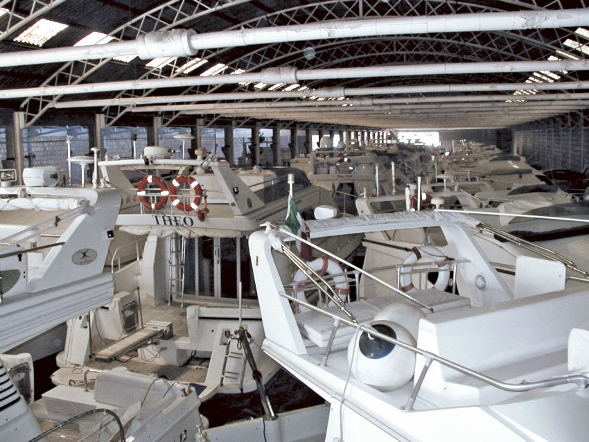 Lo stabilimento di Marina di Ravenna prevede un ampio spazio adibito al ricovero delle imbarcazioni, composto da una zona coperta di 4000 mq, scoperta di altrettanti 4000 mq, con 50 metri di banchina, posti barca e scalo di alaggio munito di travel lift.