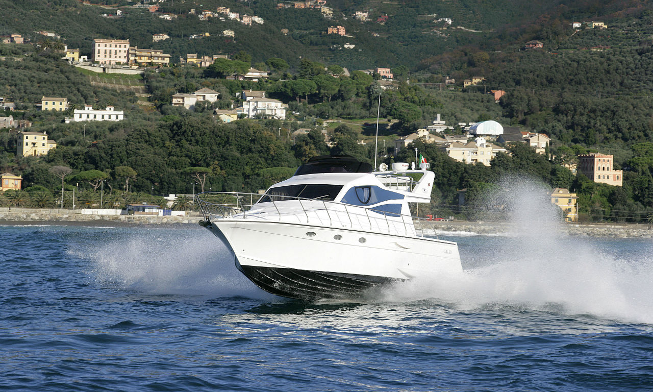 Peak for chain of m 75 and 8 mm diameter, fenders, CQR/DELTA-type anchor, stainless steel pillar, 1000W winch with bell and foot-control, fore sundeck, tempered crystal windows with baked varnish aluminium frame, electric windscreen wipers with stainless steel arms and washers, no. 4 aluminium bollards, no. 2 aluminium fairleads, no. 1 gas oil embark point, no. 1 water embark point, aluminium grab rod, stainless steel deck and flying bridge pulpit, aluminium saddle tank and PVC profile, primer and anti-vegetation, navigation lights, aluminium 2/3-shutter door to get the saloon, structural cockpit benches with peaks and pvc hatches, hatches to get the stern peak and the engine room, cockpit lighting, bathing platform with hot and cold shower, folding bathing ladder, 220V socket, manual gangway with davits, teak cockpit floor and bathing platform.