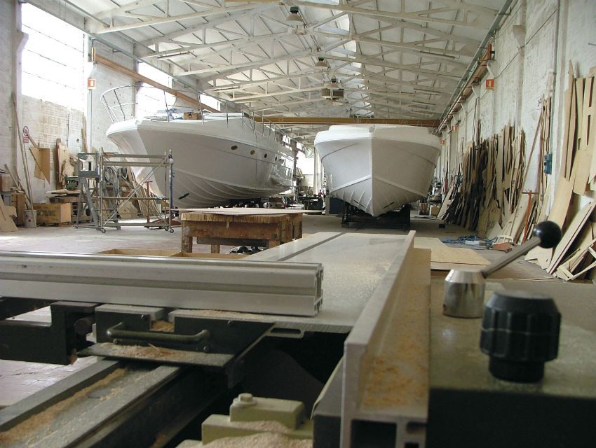In January 1970, the boat yard moved to the present head office still in Marina di Ravenna, located in via del Marchesato 11 in Marina di Ravenna, occupies 8,000 sq. m. (4,000 roofed). The yard designs and produces cabin cruisers of various lengths and provides a number of services (launching, yard slipway for boats weighing up to 40 tons, and a boat park in an approx. 3,000-sq. m. building which is empty during the summer but which can house 60-70 boats, according to sizes, during the winter months).